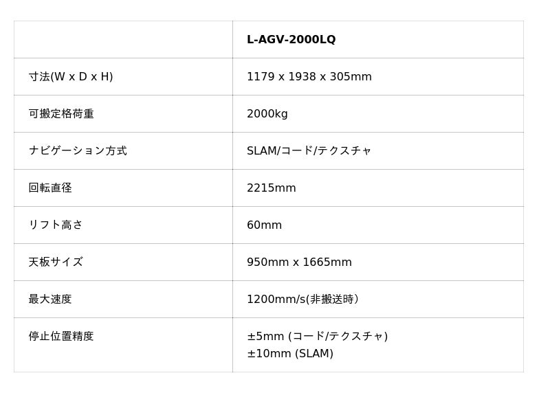 今回提供開始する2000kgモデルは、従来モデルでは搬送できなかった大型パレット・大型金型・重量設備などの自動搬送を可能にし、重量物搬送の自動化領域を大きく広げる新たな選択肢となります。