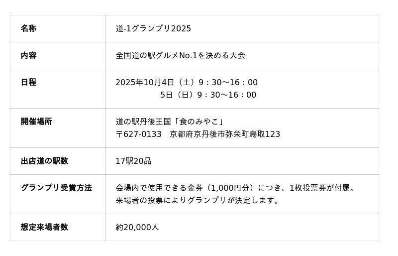 2025年10月4日(土)・5日(日)の2日間、京都府京丹後市の道の駅丹後王国「食のみやこ」にて開催される「道-1グランプリ2025」の出店道の駅&グルメが決定しました!
