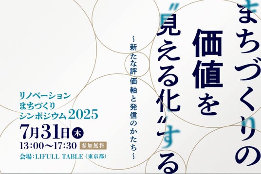 まちづくりによって生まれる変化や成果として、事業の創出に注目が集まりがちですが、リノベリングでは、そのプロセスにおける関係構築や地域への愛着の醸成、地域経済循環の促進といった、目には見えにくい本質的な価値をどのように可視化していくかという、新たな評価指標の構築に挑戦しています。また、こうした取り組みの中で、まちに起こっている変化やその世界観を効果的に発信し、認知を広げていくことの価値も明らかになってきました。このような背景を踏まえ、行政職員の皆さまを対象に、先進都市の事例紹介や専門家とのトークセッションを通じて、まちづくりの新たな評価軸と発信のかたちを探り、まちづくりの価値を「見える化」する手法を磨き、実践へとつなげるシンポジウムを開催いたします。シンポジウム後に交流会も開催しますので、お誘い合わせの上ぜひご参加ください。