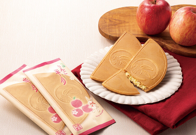 愛らしい月うさぎ印の銘菓「鎌倉半月」から、昨年新登場で好評いただいた『鎌倉りんご半月』が秋冬限定で登場いたします。もぎたてりんごの美味しさを目指して作り上げた、自慢の一品です。