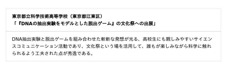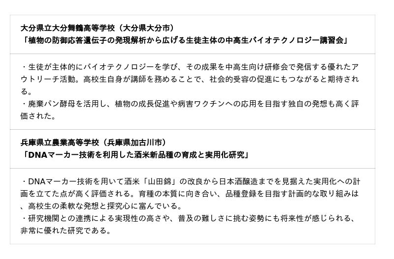 ■バイテク情報普及会賞(活動費の一部として4万円を支援)
