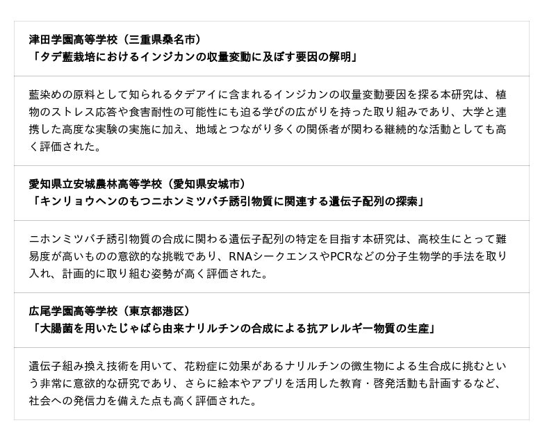 【2025年 高校生科学教育大賞 授賞校一覧】