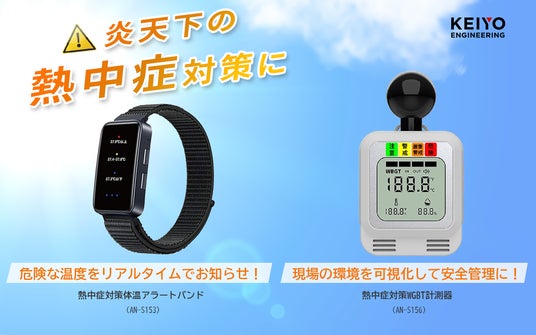熱中警戒アラートバンド 【AN-S153】は、ウォッチタイプリストバンドで15秒ごとに裏面センサーで自動測定を行い、暑熱リスクをLED発光・アラート音・バイブレーションの3方式で通知し、装着者の安全確保をサポートします。