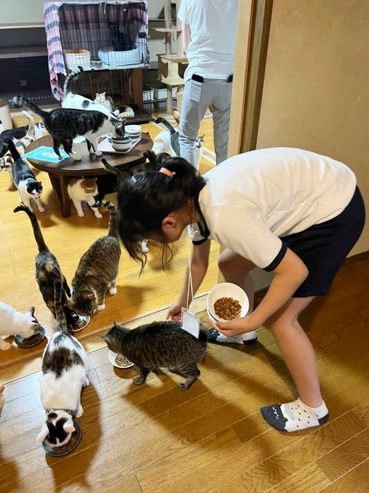 「猫寺子屋」では、ふれあいや勉強だけでなく、猫のお世話体験もプログラムに含まれます。