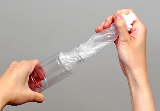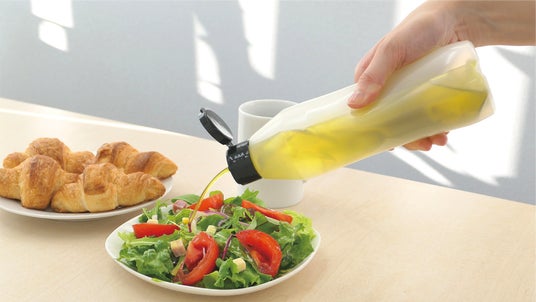 スポッとecoボトル使用後に分別できる独自構造により、PET資源の循環利用を目指した二重容器です。ガスバリア性に優れる内容器によって、容器全体の重量を削減できます。また、80%以上を占める外容器は内容物に触れないPETのため、クリーンな資源になります。引き抜いた後の内容器はとても薄く、粘度の高い内容物も簡単に最後まで使い切ることができます。