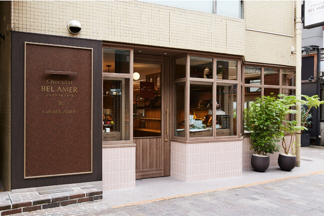 「ベルアメール 自由が丘店」は、たくさんのショコラやケーキ等が並ぶチョコレートショップと、チョコレートを活かしたデセールやアフタヌーンティー、軽食をご用意する「カフェ ベルアメール」を併設した新しいスタイルの路面店です。
