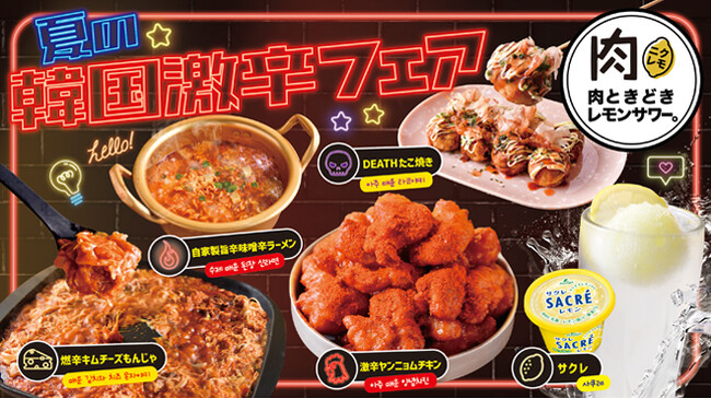 暑い夏にぴったりな刺激的な辛さ!激辛韓国グルメを食べ放題で楽しめる夏の祭典『肉レモ 夏の韓国激辛フェア』でHOTな夏を満喫しよう♪ヤンニョムチキンやインスタント麺など人気韓国メニューを真っ赤に染める激辛好きへの挑戦状!!