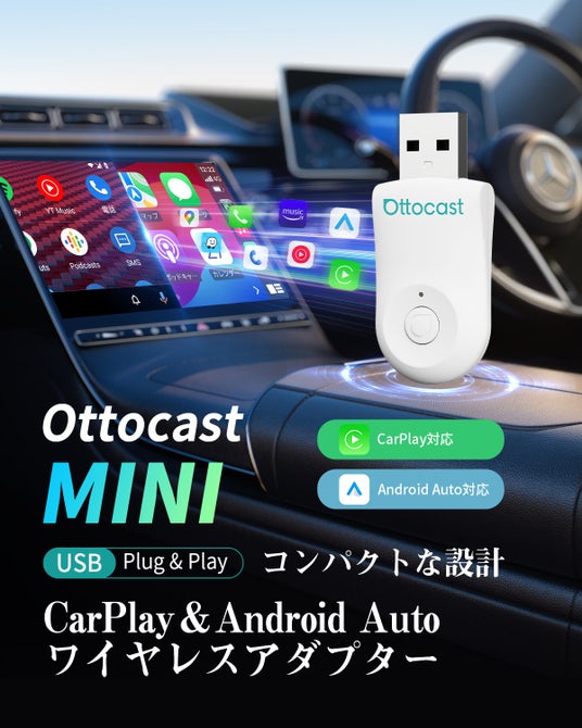 幅広い車種・スマホに対応Ottocast「MINI」は、基本的には、2016年以降に発売された純正の有線式CarPlayまたはAndroid Auto搭載車両であればご利用いただけます。