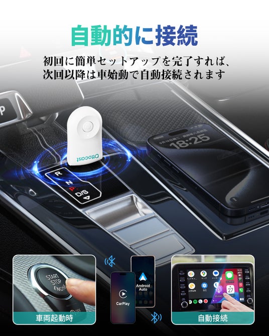 本製品は、有線接続しか対応していないCarPlay/Android Auto対応車両を、USB接続だけでワイヤレス化できる便利なアダプター。特別な取り付け作業は一切不要で、誰でも簡単に使えるのが魅力です。