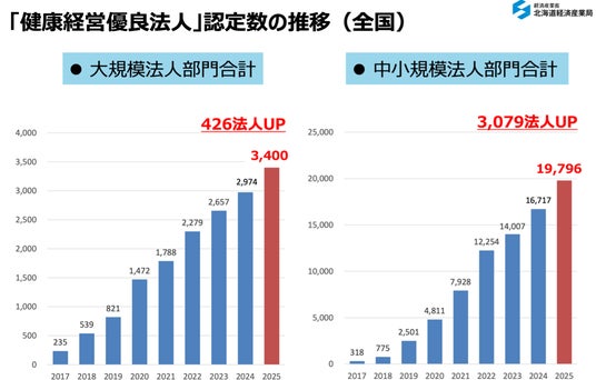 ※出展元:北海道経済産業局 「健康経営優良法人」の認定数の推移(2025)