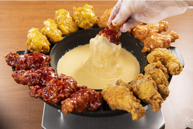 チキンにチーズを絡めて食べる人気の韓国料理「UFOチキン」。韓国屋台ハンサムでは定番のクリスピーチキンの他、ヤンニョム、ハニーマスタード、スノーチーズ、カレーパウダー、明太マヨネーズをご用意しており、お好きな味を4種類までお選びいただけます。様々なソースとチーズのマリアージュをお楽しみください。