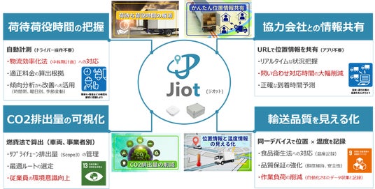 JFE 商事エレクトロニクス株式会社(本社:東京都、以下:J 商エレ)は、物流業界の「2024 年問題」と法規制強化を背景に、物流トラッキングサービス「Jiot(ジオット)」を 2025 年 8 月よりリリースいたします。改正物流効率化法と食品衛生法への対応を軸としたソリューションです。