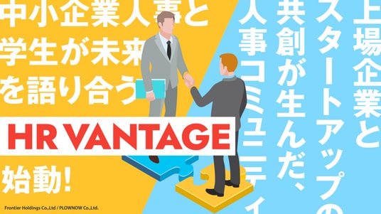 採用施策の成功を背景に成長を続ける株式会社フロンティアホールディングス(TOKYO PRO Market 上場)と、採用支援に特化したスタートアップ株式会社PLOWNOWは、2025年8月より、中小企業の人事と学生がフラットに対話できる共創型コミュニティ「HR VANTAGE(ヴァンテージ)」をスタートします。