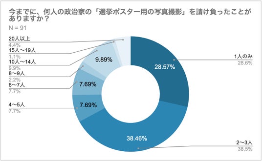 ・ 選挙ポスター用の撮影経験があるカメラマンは4割強、20人以上撮影してきたベテランも