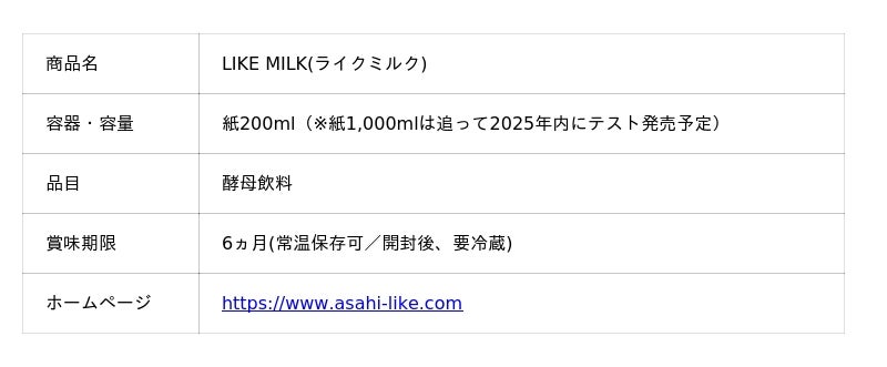 アサヒグループジャパン株式会社(本社 東京、社長 濱田賢司)は、酵母からできた非動物性ミルク『LIKE MILK(ライクミルク)』のテスト販売を開始します。7月16日から約2カ月間、大日本印刷株式会社が提供する店頭のサイネージ広告と購買データ分析を掛け合わせたサービス「リテールメディアDMP/DSP」を利用し、クイーンズ伊勢丹の10店舗で販売します。7月23日からはAmazon.co.jpで、数量限定で販売します。また各種イベントに出展し、商品の認知向上や飲用機会の創出を図ります。お客さまの購買行動や生の声を収集・分析することで、2026年に予定する全国発売を見据えた商品のプロモーションに活用します。