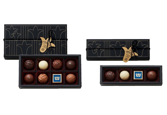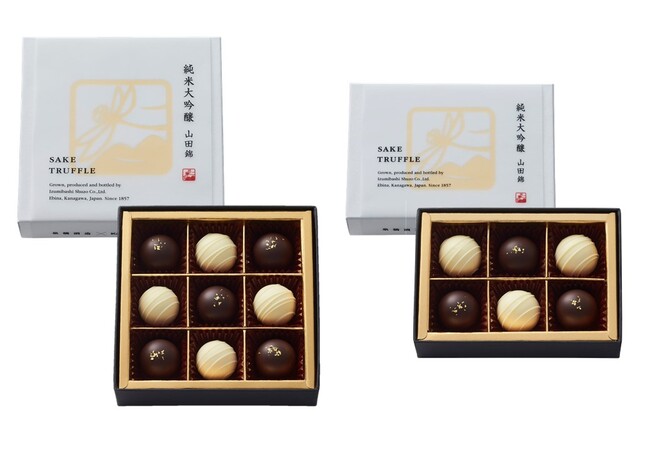 地元 神奈川の蔵元「泉橋酒造」の「純米大吟醸 とんぼラベル 山田錦」が持つ、柔らかく、濃密な甘みと芳醇な旨味を相性の良いホワイトチョコレートのガナッシュに閉じ込めました。チョコレートのほろ苦さを感じる「スイートチョコレート」と、よりまろやかな味わいの「ホワイトチョコレート」でコーティングし、一箱で二つの異なる味わいをお愉しみいただける大人のための日本酒トリュフです。