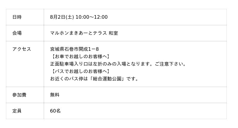 本イベントでは、食べ物と命のつながりについて深く考え、ご自身やご家族の健康を見つめ直すきっかけをご提供します。