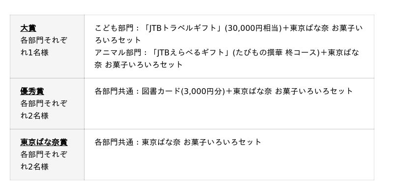 1部門につき大賞 1名、優秀賞 2名、東京ばな奈賞 2名の5名が入賞。