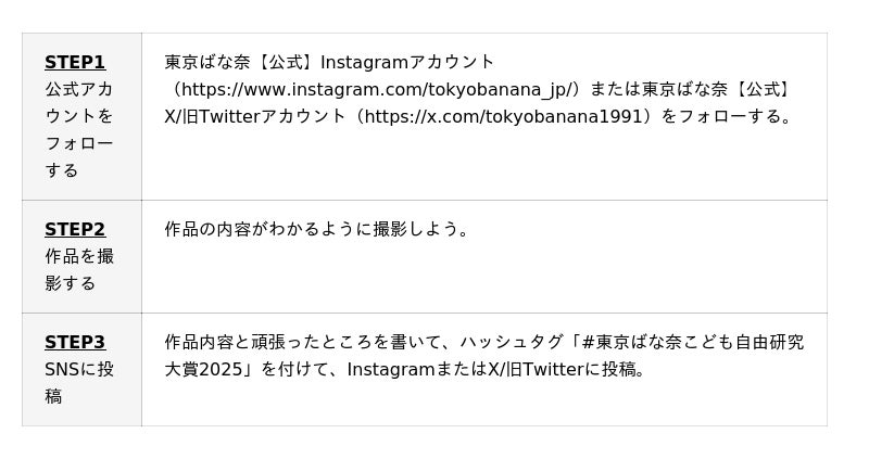 【名 称】東京ばな奈こども自由研究大賞2025【 H P 】https://www.tokyobanana.jp/special/87day.html