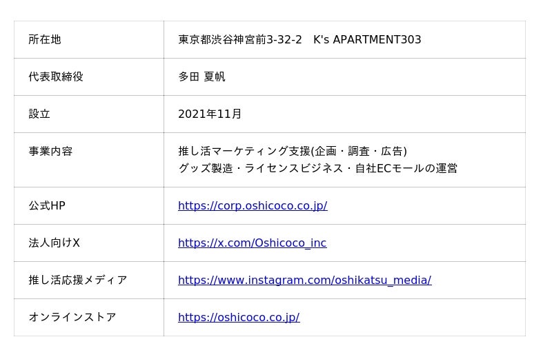 弊社は"推し活”女子をターゲットに、オタク領域でオンラインストア・メディア運営を実施しております。また、企業様向けにオタク企画プロデュースやコンサルティングを行っております。