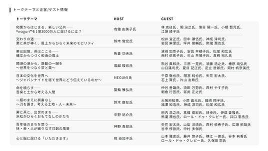 茶事には、農業、ものづくり、金融、アカデミア、行政、メディアなど、第一線で活躍する著名人が参加。世代や業種、立場を超えた越境的な対話が生まれました。