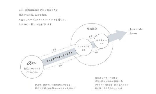 Aoeでは、教育・福祉・地域・企業と連携し、「美しく自生し共生する社会」をコンセプトに、競争ではなく共鳴、分断ではなく共感が巡る社会を目指してゆく、社会的な価値創出を積極的に実装した事業に取り組みます。