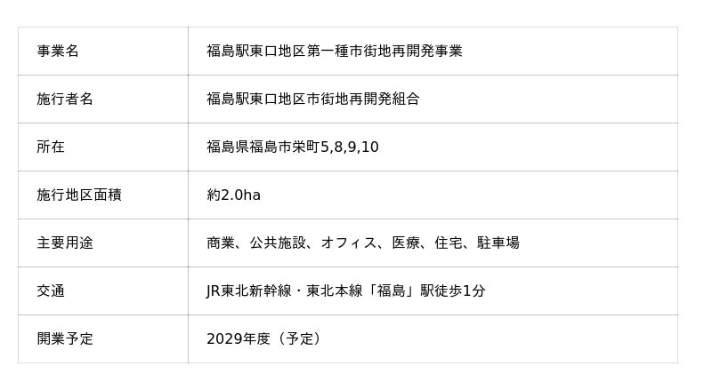 事業内容:「にぎわい・文化・つながりが生まれるたまご=FUKUSHIMA EGG=」を開発コンセプトとして、 福島駅東口周辺の都市機能の更新と高次都市機能の集積を図るため福島駅東口地区第一種市街地再開発事業を推進しています。