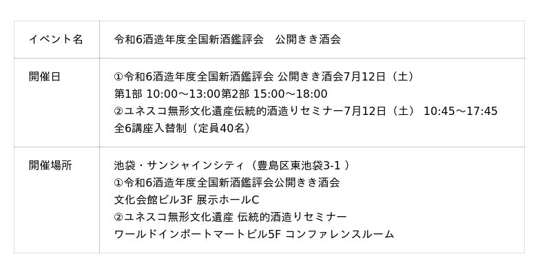 【参考情報】「令和6酒造年度全国新酒鑑評会 公開きき酒会」概要