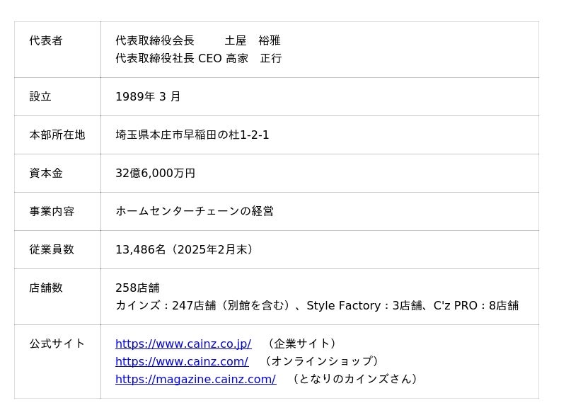 株式会社カインズは、29都道府県下に258店舗を展開するホームセンターチェーンです。