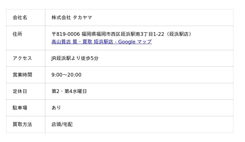 高山質店は、福岡を中心に21店舗展開する買取・質預かり業者です。買取以外に販売も行い、その買取価格の高さは地元でも評判で、「買取といえば高山質店」というほど圧倒的知名度を誇ります。