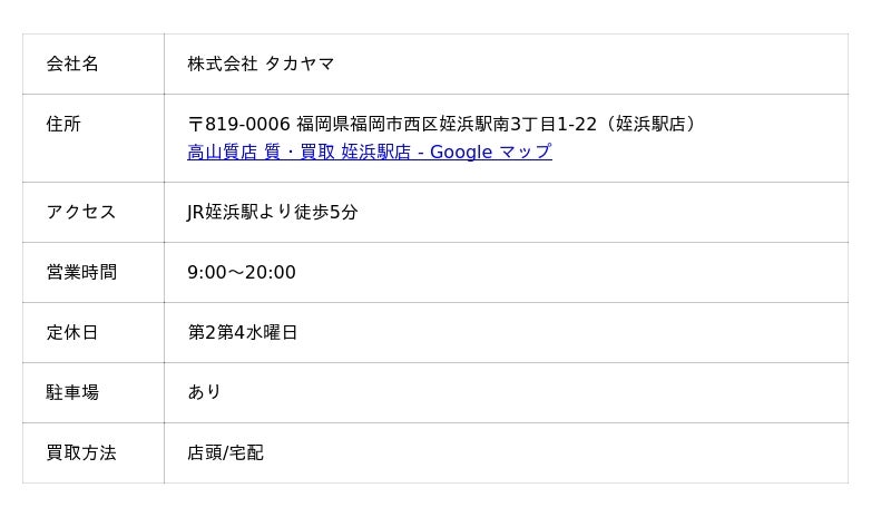 高山質店は、年間100万品もの取引実績と最新データに基づいた圧倒的な査定力が魅力。地元に根付いた買取店として、地域での知名度は圧倒的で、来客数も多く、姪浜駅店ではドライブスルー買取も行うほどです。送料無料・キャンセル料無料、宅配キットも無料の宅配買取も人気です。