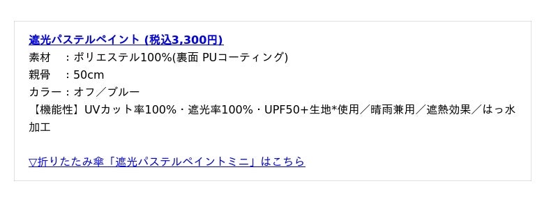 ※記載の結果は生地の状態での測定値であり、傘本体の性能を示す数値ではございません。