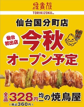 仙台への出店により、東北地方の皆様に鳥貴族ブランドを知っていただくことで、東北エリアでの出店拡大の足掛かりにしたいと考えております。