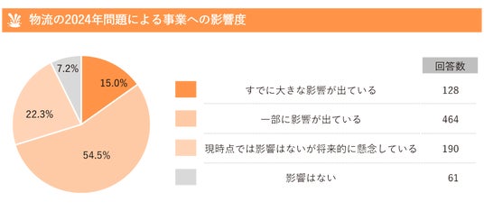 「物流の2024年問題」による事業への影響度を尋ねたところ、全体の69.5%が事業への影響を実感していることが明らかになりました。