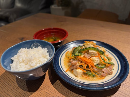 レギュラーメニューのゴーヤチャンプルーを限定で定食に