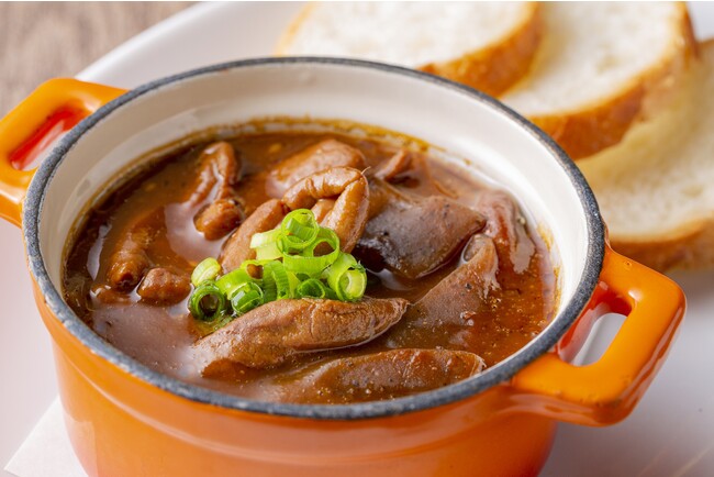 豚モツとこんにゃくのどて煮をYEBISU BAR流に仕上げました。