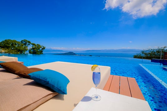 SPA施設は全6種類(指宿名物「砂むし風呂」、セラミックスパ、岩盤浴、貸切露天風呂、貸切内風呂、大浴場)を備え、日本では数少ない「セラミックスパ」が一番のおすすめ。また、県本土唯一のインフィニティプールも設置し、錦江湾(鹿児島湾)と繋がる光景は圧巻です。