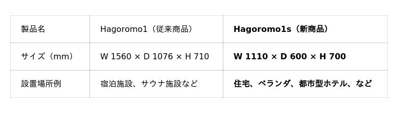 《Hagoromo1s》は、従来の主力モデル《Hagoromo1》を一回りコンパクト化した新モデルです。横幅は50cm以上、奥行き(厚み)は40cm以上の削減を実現し、限られた設置スペースにも対応できるサイズに仕上げました。