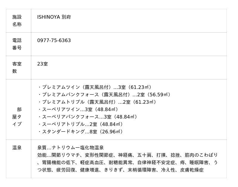 「ISHINOYA 別府」は、コンテナを活用した体験型宿泊施設です。全客室オーシャンビューで、離れ形式のコテージタイプとして設計しており、すべての客室で源泉かけ流し温泉をご利用いただけます。一部の客室には専用の露天風呂を備えており、滞在そのものがアクティビティとなるような、五感で楽しむ新しい滞在体験を提供いたします。