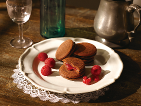 風味豊かなラズベリーソースを、ミルクチョコレートでコーティングし、ココアクッキーでサンドした、贅沢な味わいのサンドクッキーです。濃厚なチョコレートの風味と、ラズベリーの爽やかな酸味のコントラストをお楽しみいただけます。