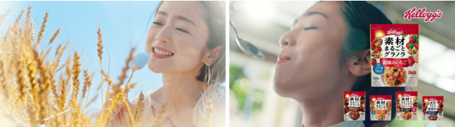 今年2022年に日本ケロッグは設立60周年を迎えました。「ケロッグ素材まるごとグラノラ」は、ケロッグが穀物の専門家として、長年に渡り培ってきた知見と開発技術を詰め込み、こだわり抜いて作り上げた60年の集大成のグラノラ製品です。CMキャラクターには、国民的女優であり、老若男女問わず幅広い年齢層に愛される安達祐実さんを起用し、安達祐実さん自身初となる“歌唱演技”に挑戦。CMでは、「ケロッグ素材まるごとグラノラ」を口にした感動から、壮大な麦畑にワープし、表情豊かに全力で「素材まるごと」の特徴を歌い上げる、迫力満点のシーンに注目です。歌の中では、グラノラに含まれる穀物や果物などの素材の力を、「まるごと」実感いただけることを表現しています。素材そのままの美味しさや食感を楽しむ安達さんの新CMをぜひご覧ください。
