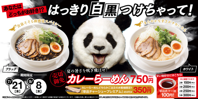 株式会社幸楽苑ホールディングス(本社:福島県郡山市、代表取締役社長:新井田 昇、以下 幸楽苑)は、2022年7月21日(木)から9月8日(木)の期間限定で「カレーらーめんブラック」と「カレーらーめんホワイト」を幸楽苑の店舗で販売致します。