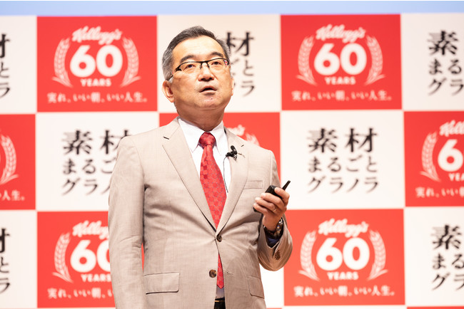 イベント冒頭では、日本ケロッグ60年のヒット商品を振り返りつつ、ケロッグが目指すビジョンや社会貢献プログラム”Better Days(TM)”について、そして今後の事業方針等のプレゼンテーションを実施。執行役員 マーケティング本部長 山田実は、「日本ケロッグは、『世界中の人々が食だけでなく、心まで満たされる善良で、正しい社会』というビジョンのもとに、体だけでなく、心まで、朝だけでなく、その先に続く一日、一生まで、日本の皆様を元気にできるよう、進化し続けていく」と語りました。