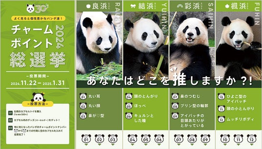 2024年11月22日~2025年1月31日の期間中、アドベンチャーワールドで開催した「HAPPY PANDA30th」の企画「チャームポイント総選挙」。ファンの皆さまに総計13,000票もの投票をいただき選ばれた、4頭のジャイアントパンダそれぞれの“チャームポイント”をモチーフにした、個性あふれる限定グッズがついに登場します!