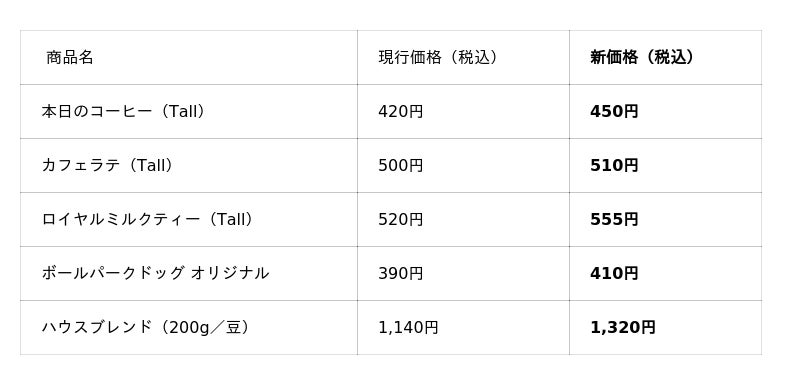■改定内容 一部商品(ドリンク・フード・コーヒー豆など)の価格改定