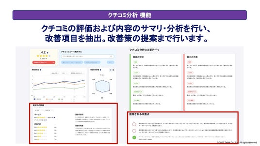 蓄積されたレビューを分析し、運営改善に生かせるインサイトを提供します。
