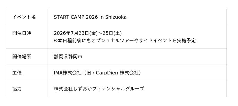 IMA株式会社(代表取締役:海野 慧、呼び名:イマ)は、7月18日(金)から19日(土)にかけて共創イベント「START CAMP 2025 in MEIWA」を、かつて天皇に代わり伊勢神宮の天照大神に仕える斎王が住まう場であった三重県明和町にて開催しました。