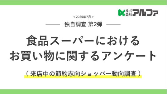 近年のデータに基づく意思決定を重視する傾向を背景に、株式会社アルファは販促施策や店舗演出の理解促進を目的として「食品スーパーにおけるお買い物に関するアンケート調査」を実施。