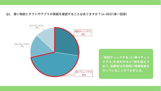 「毎回チェックする」と「時々チェックする」を合わせると7割を超えており、消費者は日常的に情報収集を行っていることがうかがえる。