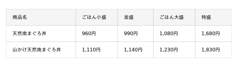 また、大盛のごはんに並盛の2倍の量の南まぐろを盛り付けた“特盛”もご用意しました。たっぷりの南まぐろで贅沢な気分をお楽しみいただけます。